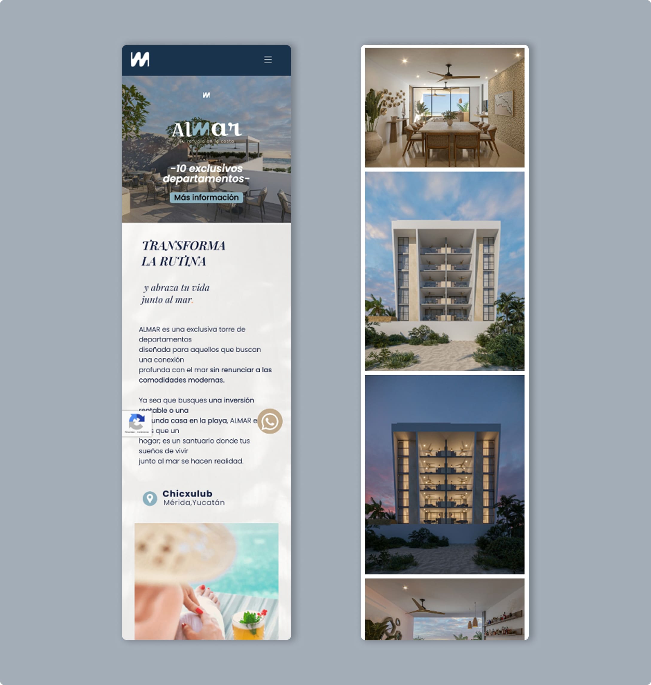 Colaboramos con Almar Tropical para crear un sitio web que transmite su esencia fresca, exclusiva y orientada al estilo de vida vacacional. Desarrollamos una experiencia digital moderna, responsiva y visualmente atractiva, diseñada para cautivar a clientes e inversionistas desde el primer clic. Esta nueva plataforma potencia la presencia online de Almar Tropical y refuerza su propuesta de valor con una navegación fluida y estratégica.