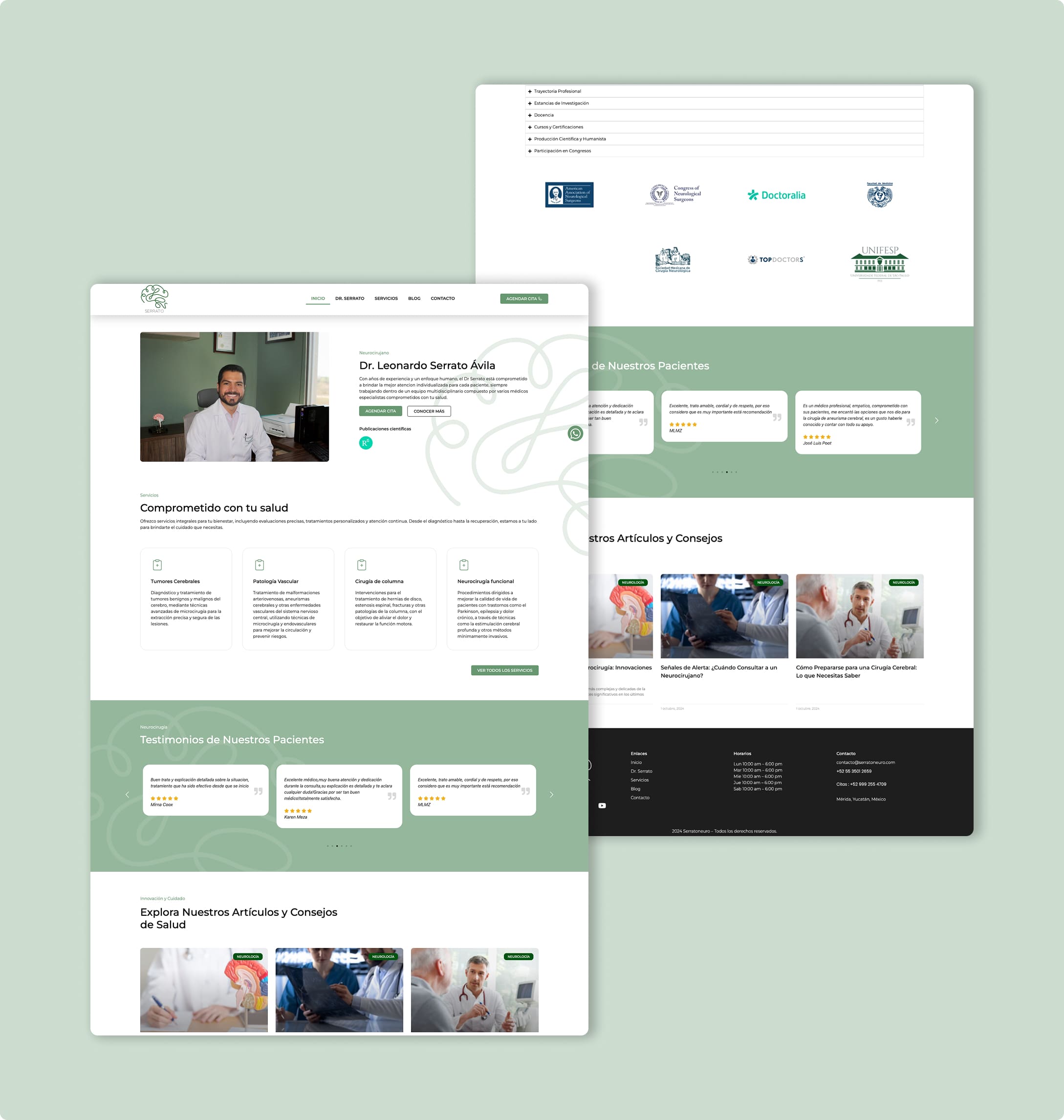 Tuvimos el privilegio de colaborar con el Dr. Leonardo Serrato, reconocido especialista en su ramo, para el diseño y desarrollo de su sitio web profesional. Creamos una plataforma digital moderna y funcional que refleja su trayectoria y enfoque humano en la atención médica. El sitio es completamente responsivo, de fácil navegación y optimizado para ofrecer una experiencia fluida tanto a pacientes como a visitantes. El resultado es una herramienta eficaz que fortalece su presencia en línea y mejora la comunicación con sus pacientes.